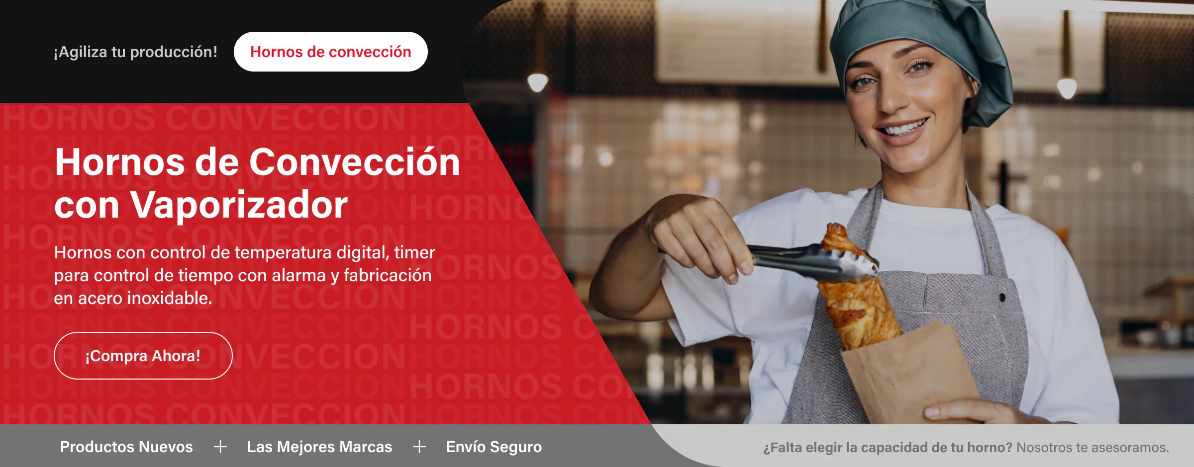 Nuestros hornos de convección aseguran una calidad excepcional. Diseñados para una distribución uniforme del calor, estos hornos son la elección perfecta para obtener resultados óptimos en la cocción de tus alimentos.