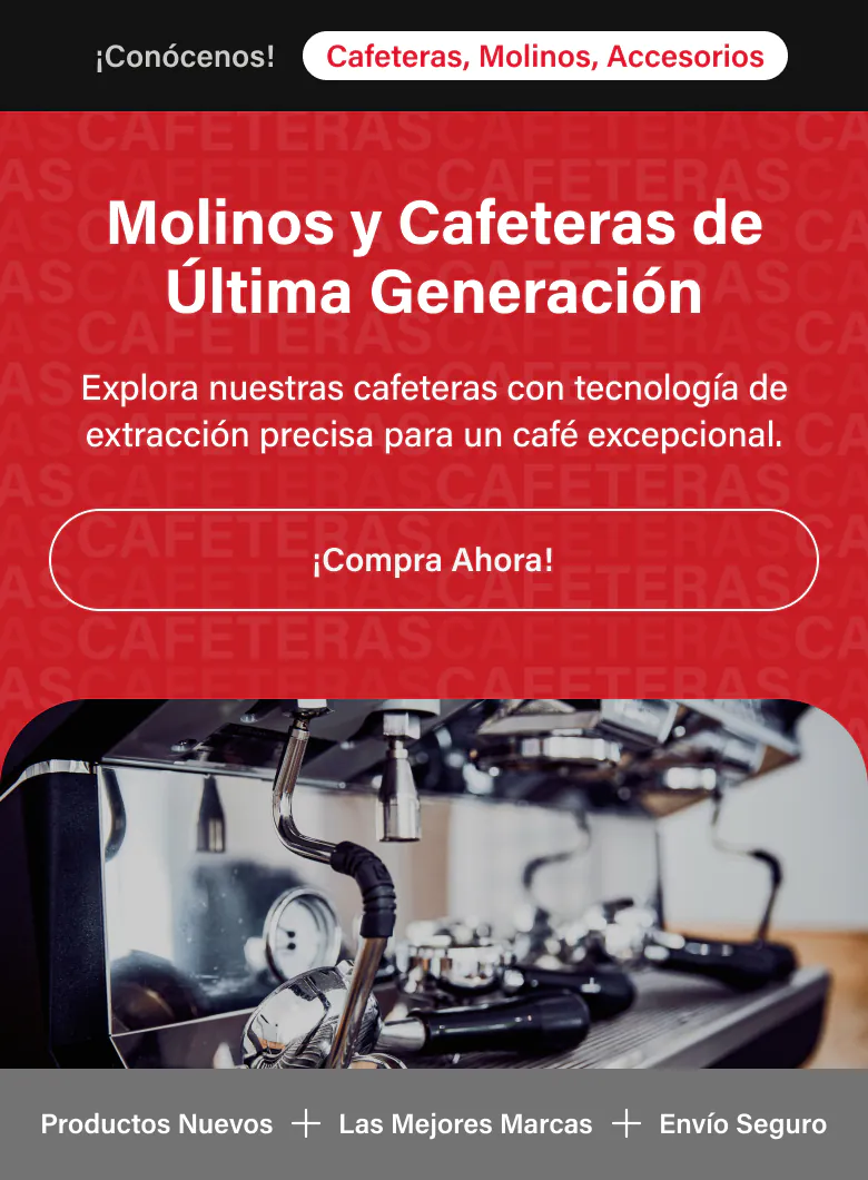 Contamos con una amplia gama de productos como cafeteras, batidoras, molinos y accesorios para cafeterías. Nuestros productos están cuidadosamente seleccionados para brindar un toque de excelencia en cada taza de café que sirvas.