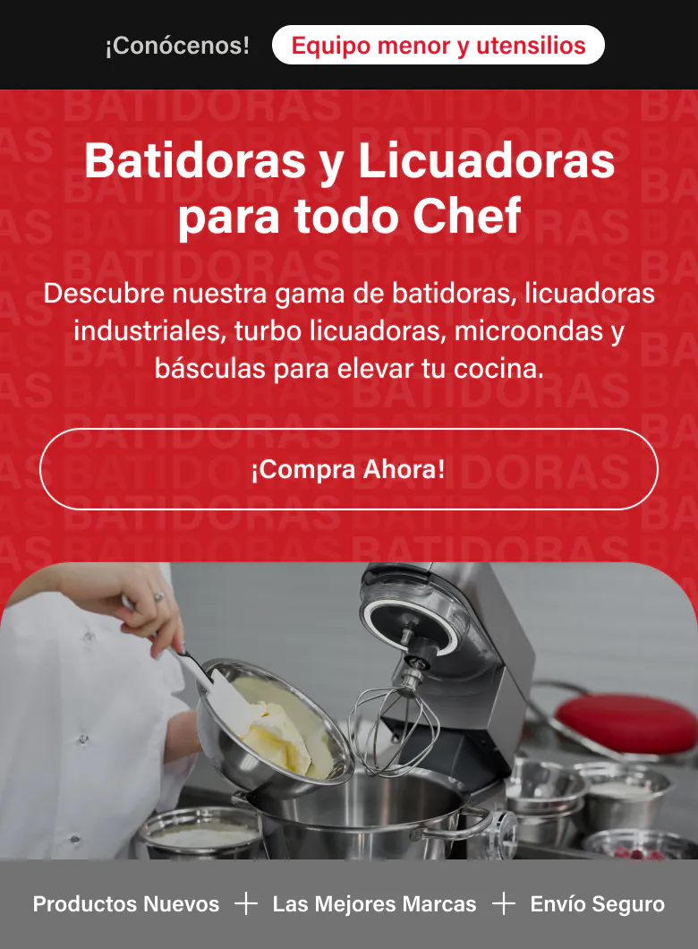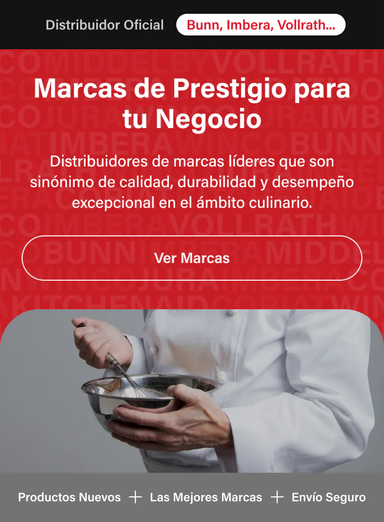 Como distribuidores autorizados, ofrecemos las cocinas industriales en acero inoxidable y equipos de refrigeración de la más alta calidad para satisfacer tus necesidades empresariales con excelencia y confiabilidad garantizada.